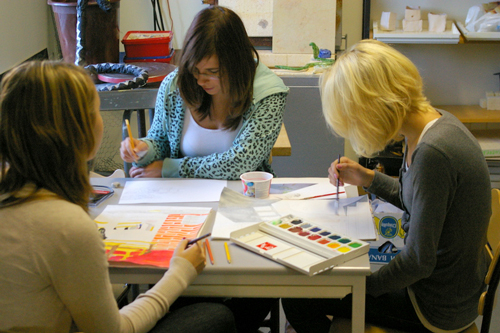 mångsidigt (teckning, målning, foto, film, text, plastisk formgivning, grafik, tygtryck o.s.v.)