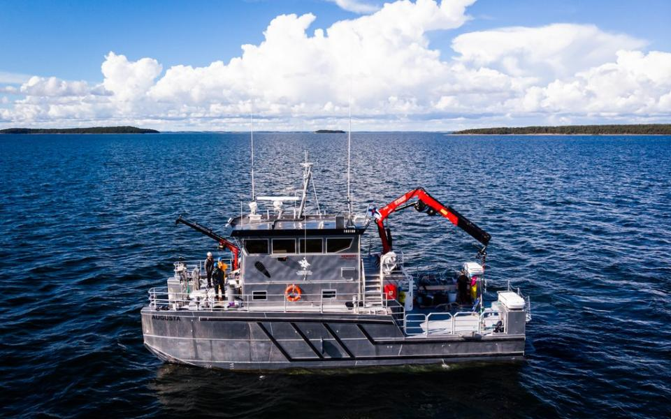 Vi samlades ute på bryggan strax före klockan nio på morgonen. Därifrån steg vi ombord på fartyget. Det första vi gjorde när vi väl var ombord var att se på en säkerhetsvideo i ett av fartygets rum. Efter det fick vi en kort introduktion av en arbetare på stationen, då hon berättade för oss mera om fartyget. R/V Augusta är en katamaran som är specialbyggd för Tvärminne zoologiska station, och den kostade omkring två miljoner euro. När all praktisk information var avklarad var det äntligen dags att ge oss ut på havet.