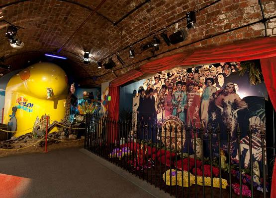 På bilden syns en vägg med skivomslaget till Sgt. Pepper’s Lonely Hearts Club Band och en gul ubåt, som föreställer den i sången och filmen Yellow Submarine.